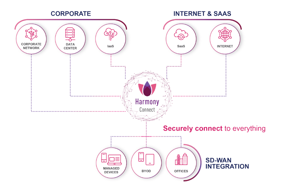 ▲HARMONY CONNECT enables enterprise users to securely access the corporate network and all applications remotely.