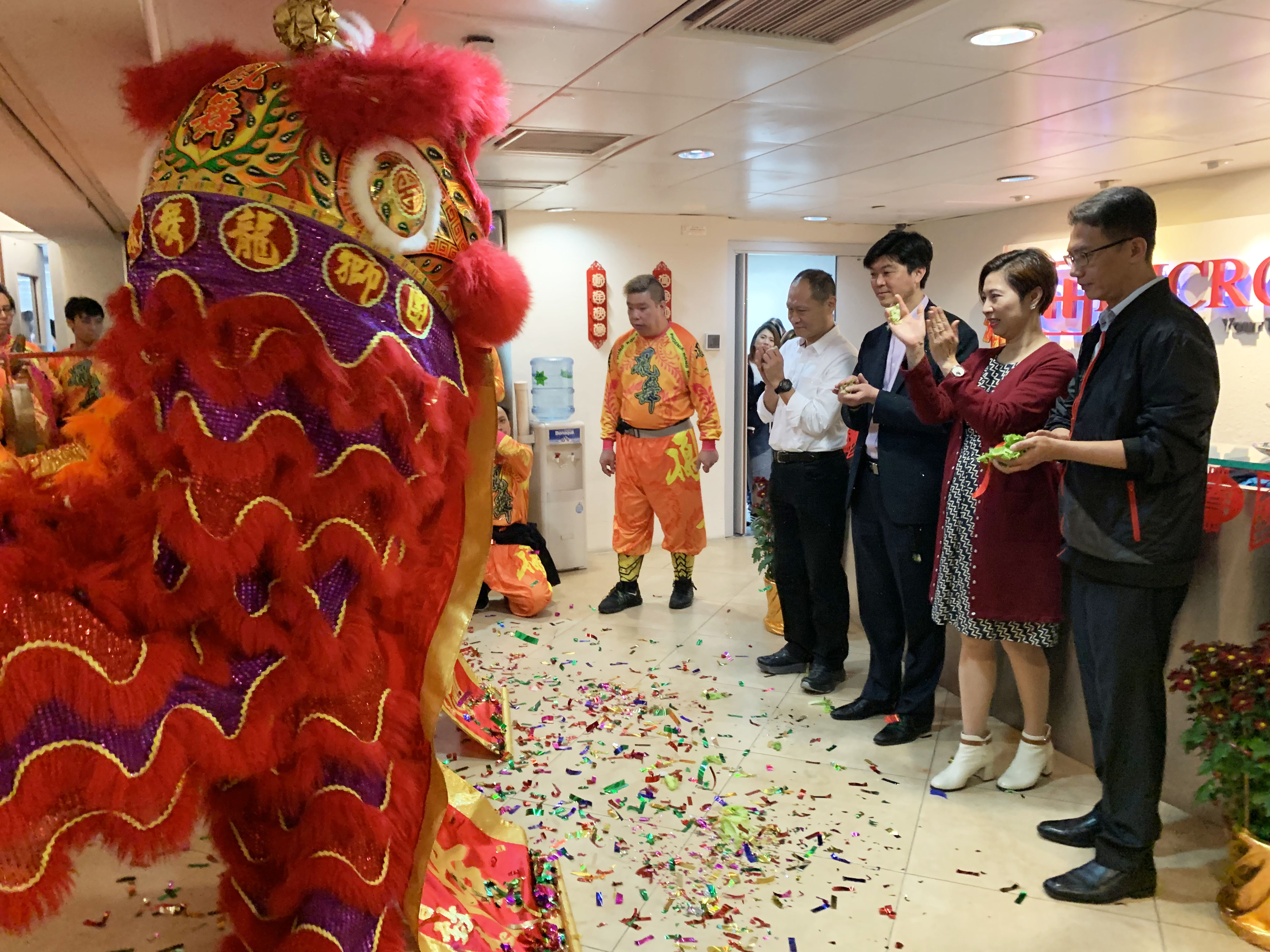 感謝夥伴Innovix Distribution Hong Kong又一年帶同醒獅隊及燒豬,大鑼大鼓來到Microware Limited拜年,熱鬧無比!鑼聲鼓聲響遍全公司,響足一個早上!在採青儀式,Innovix與Microware管理層接過菜頭,寓意「生菜、生財」好意頭!