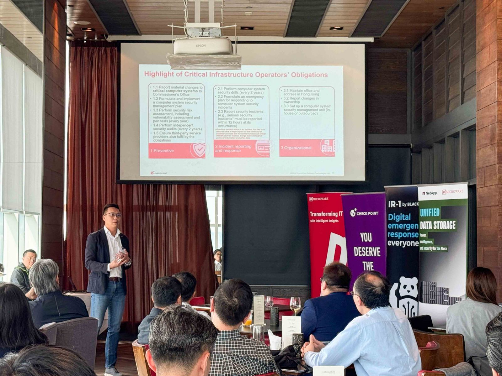 Microware 上週與合作夥伴 Check Point、Blackpanda 及 NetApp 共同舉辦了一場精彩的 Happy Hour 活動!我們圍繞《保護關鍵基礎設施(電腦系統)條例》主題展開深入探討,引發許多精闢見解。問答環節氣氛熱烈,將大家緊密連繫於此話題。感謝所有參與者的熱情支持!